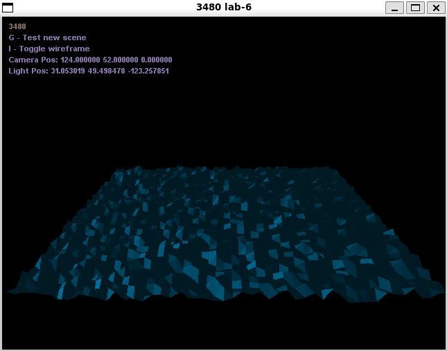 Using perlin noise to create bumps and got lighting to work by normalizing the vectors got a functional camera by modifying the camera used in plasma lab