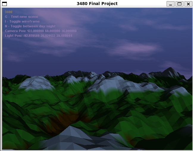 using the same method from our perlin lab to color the terrain. Checking the height of terrain and if its within a certain range, the color would be brown(lowest), green(mid), and white (highest)