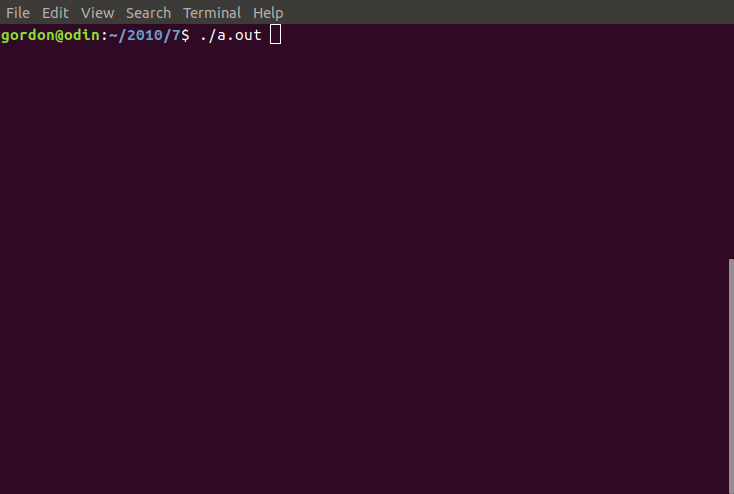 Get the animation program to start. $ cd $ cd 2010/7 $ cp /home/fac/gordon/public_html/2010/7/anim.cpp . Compile and run the program. It will look like this:Assignment: 1. Copy anim.cpp to anim2.cpp. 2. Add a character that moves vertically. Start the character at the bottom of the animation area. When the character gets to the top, start it over at the bottom. The starting column can be random. The column may even be randomized each time the character starts. • Wait about 2-seconds before starting the vertical character. A call to time(NULL) returns a value that increases by 1 every second. Use time(NULL) to time the 2-second delay. It will look like this: