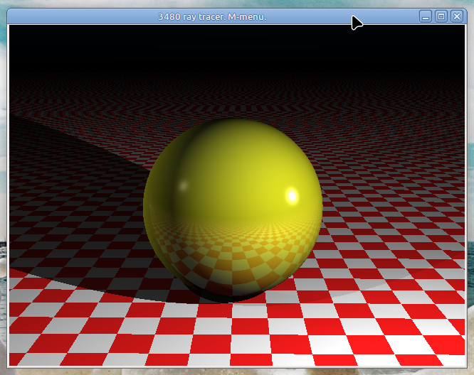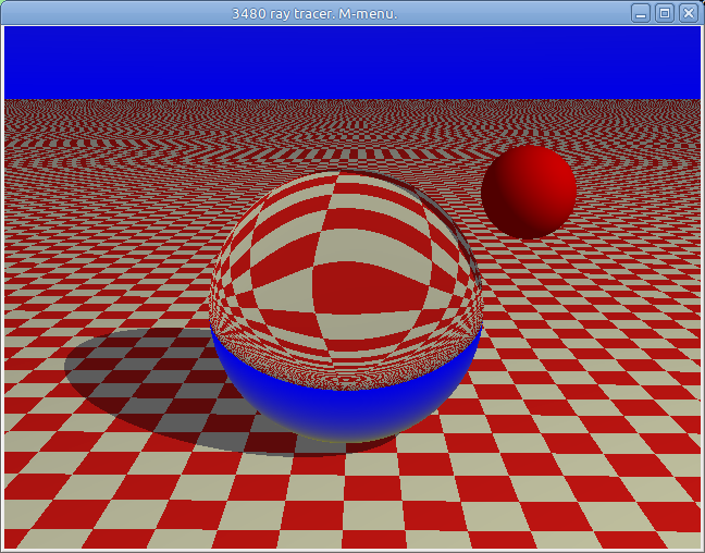 Step 1:Log into Odin, using the -YC option. example: ssh -YC myname@odin Do this: $ cd 3480 $ ./lab-start.sh $ cd 7 $ cp /home/fac/gordon/p/3480/code/7/* . $ make $ ./lab7 Press M Step 1: render a scene similar to the one belowThis scene is also possible