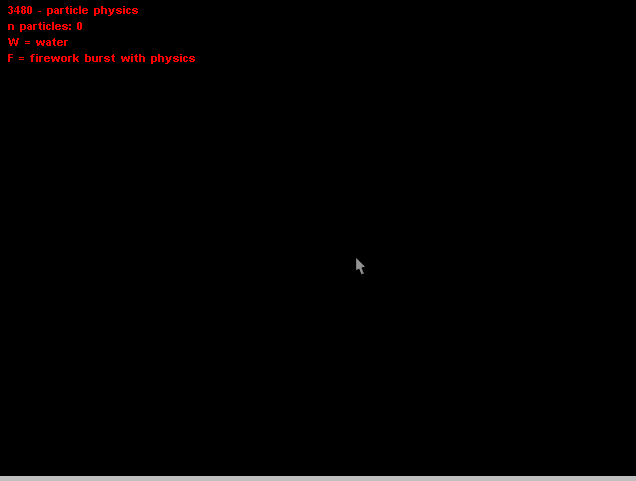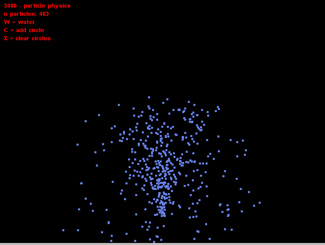 I began with the particles.cpp program and centered the water particles and made them shoot upward. This is where I was testing the gravity of the particles.