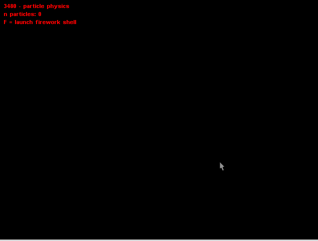 For this project, I will create a fireworks display. I will demonstrate a firework shell shooting into the sky, and at a certain point, the shell will explode in the sky. Once the explosion occurs, I will create particles shooting out of the shell. At first, the particles will be bright, then they will begin to fall and their color will fade away.