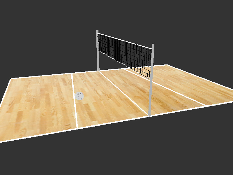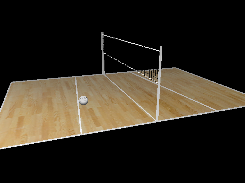 We have decided on a bouncing volleyball on a court. We want to add a glossy wood floor and even a net!